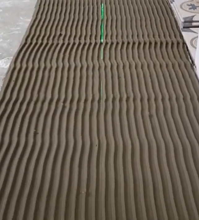 Khi dùng bay răng cưa và keo dán chuyên nghiệp, lúc gạt vữa bằng bay răng cưa tạo nên các rãnh nhỏ trên bề mặt chất kết dính, như vậy sau khi đặt gạch vào thì vữa dán sẽ lấp kín bề mặt sau của gạch, giúp gạch được bám chắc hơn trên nền, không bị bộp gạch và bung vỡ gạch sau này.